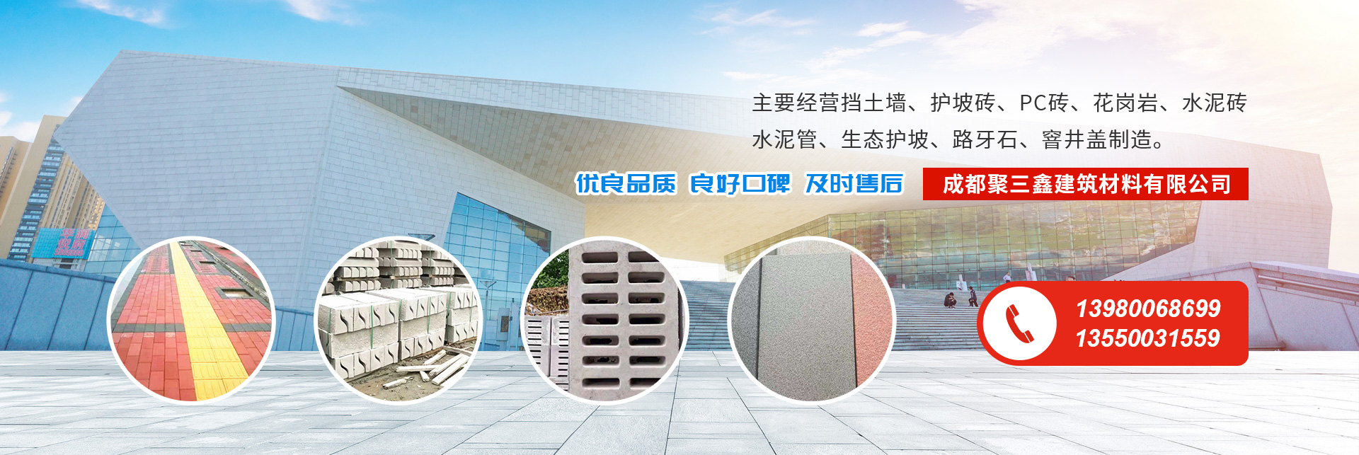成都聚三鑫建筑材料有限公司公司成立2018年,位于四川省崇州市,占地15600平方米,我們擁有固定資產(chǎn)達(dá)3000萬元,交通十分便利。成立以來一直以優(yōu)質(zhì)的產(chǎn)品、良好的口碑、及時(shí)的售后獲得了市場(chǎng)的高度認(rèn)可。在工廠后期發(fā)展壯大的時(shí)間里,我們不忘初心,始終為客戶提供高品質(zhì)產(chǎn)品和技術(shù)支持、健全的售后服務(wù),我工廠主要經(jīng)營擋土墻、護(hù)坡磚、pc磚、花崗巖、水泥磚、水泥管、生態(tài)護(hù)坡、路牙石、窨井蓋制造。(依法須經(jīng)批準(zhǔn)的項(xiàng)目,經(jīng)相關(guān)部門批準(zhǔn)后方可開展經(jīng)營活動(dòng)),我們有好的產(chǎn)品和專業(yè)的銷售和技術(shù)團(tuán)隊(duì),創(chuàng)建以來本秉著“誠信,務(wù)實(shí)